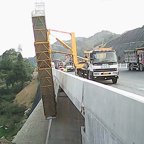 主要性能及特点桥梁检测作业车工作时只占一个车道,不影响其它车辆通行。桥梁检测作业车底盘采用知名品牌,承载能力大,动力强劲,性能优越,稳定性好。桥梁检测作业车采用先进的变幅机构和平台伸缩机构,副车架和回转底座采用独特的箱型结构形式,以确保产品工作平稳、安全。采用液压驱动自行走系统,提高产品作业效率。配以备用汽油机系统和发电机系统,为检测提供方便。