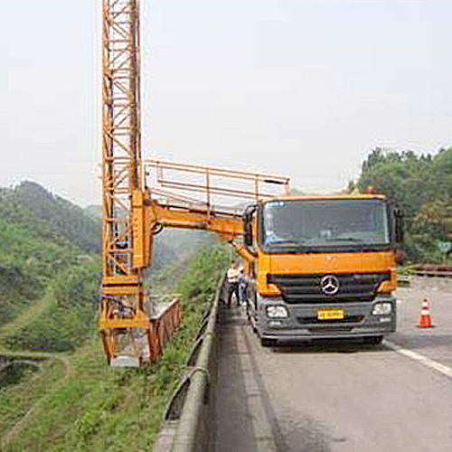 主要性能及特点桥梁检测作业车工作时只占一个车道,不影响其它车辆通行。桥梁检测作业车底盘采用知名品牌,承载能力大,动力强劲,性能优越,稳定性好。桥梁检测作业车采用先进的变幅机构和平台伸缩机构,副车架和回转底座采用独特的箱型结构形式,以确保产品工作平稳、安全。采用液压驱动自行走系统,提高产品作业效率。配以备用汽油机系统和发电机系统,为检测提供方便。