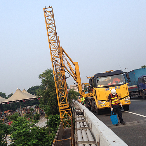 主要性能及特点桥梁检测作业车工作时只占一个车道,不影响其它车辆通行。桥梁检测作业车底盘采用知名品牌,承载能力大,动力强劲,性能优越,稳定性好。桥梁检测作业车采用先进的变幅机构和平台伸缩机构,副车架和回转底座采用独特的箱型结构形式,以确保产品工作平稳、安全。采用液压驱动自行走系统,提高产品作业效率。配以备用汽油机系统和发电机系统,为检测提供方便。